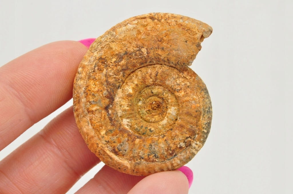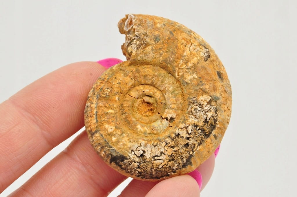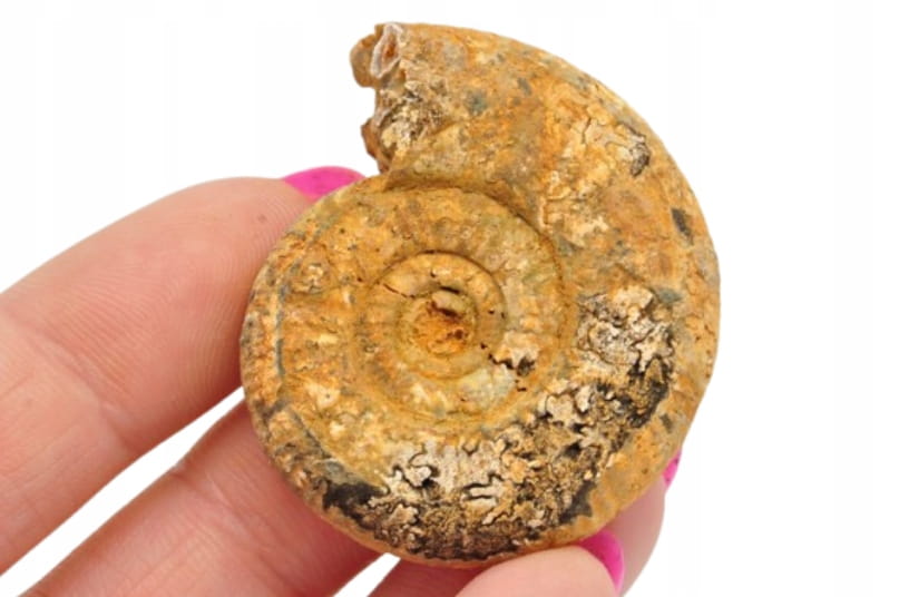 NATURALNY AMONIT, PIĘKNIE ZACHOWANA SKAMIENIAŁOŚĆ. RZADKI OKAZ POCHODZĄCY Z POLSKI. DOSKONAŁY DO KOLEKCJI ORAZ DO DEKORACJI.