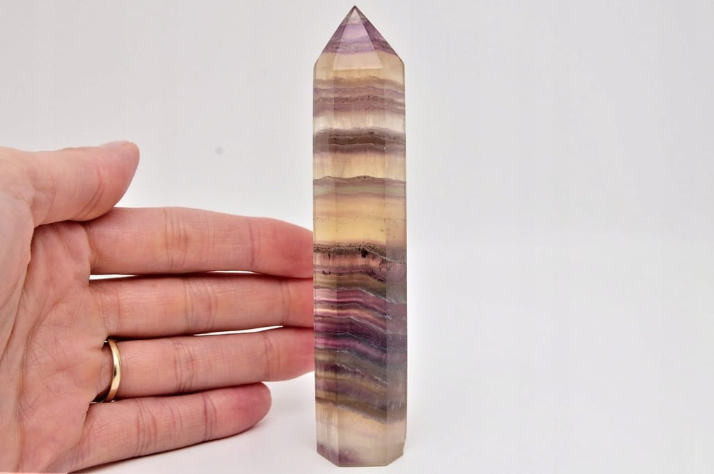 NATURALNY FLUORYT TĘCZOWY, SZLIFOWANY OBELISK, SUPER JAKOŚĆ, PIĘKNA BARWA, DO KOLEKCJI, NA PREZENT.