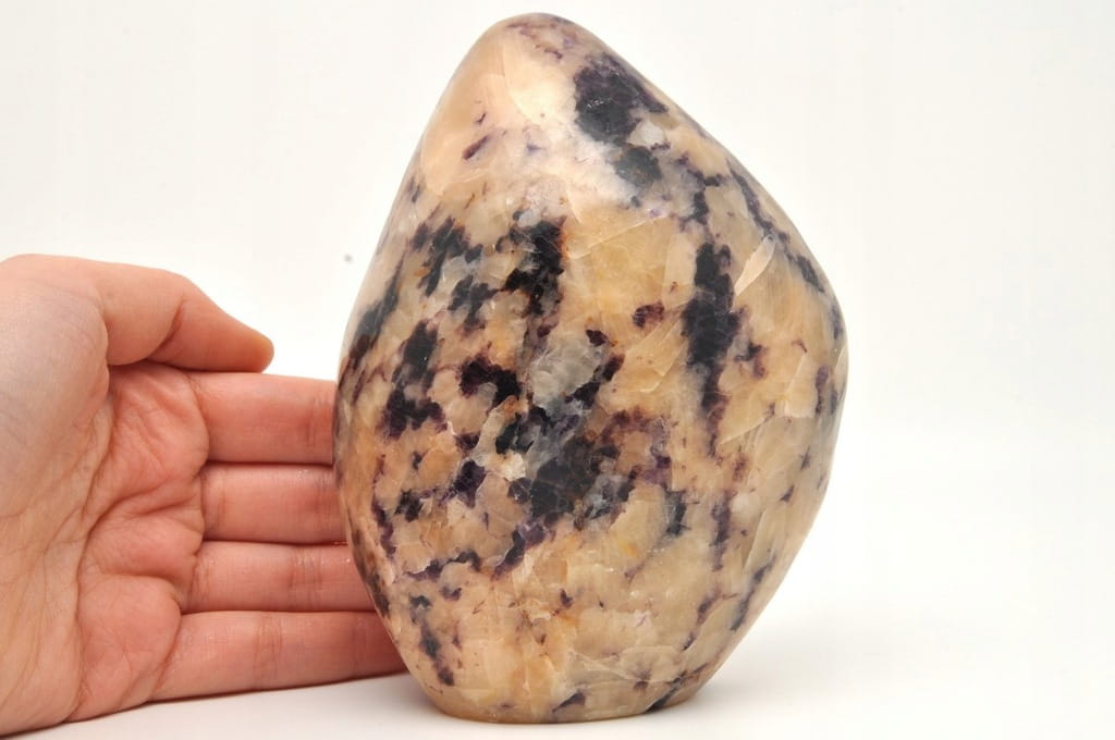 NATURALNY FLUORYT Z KALCYTEM, SZLIFOWANY, POLEROWANY, PIĘKNY KAMIEŃ OZDOBNY, DO KOLEKCJI, NA PREZENT.