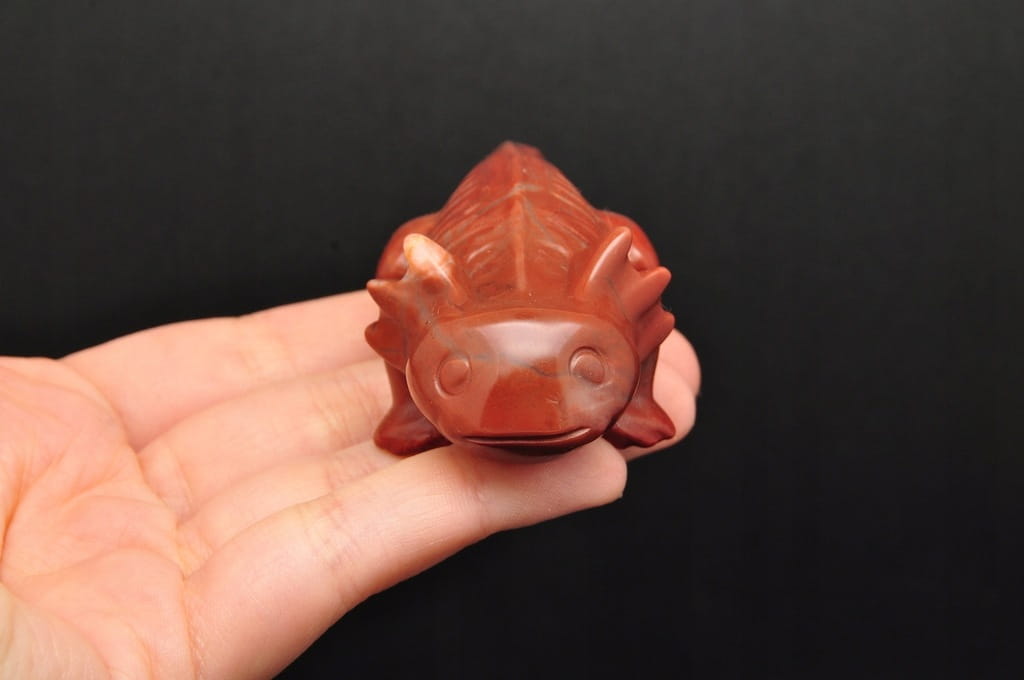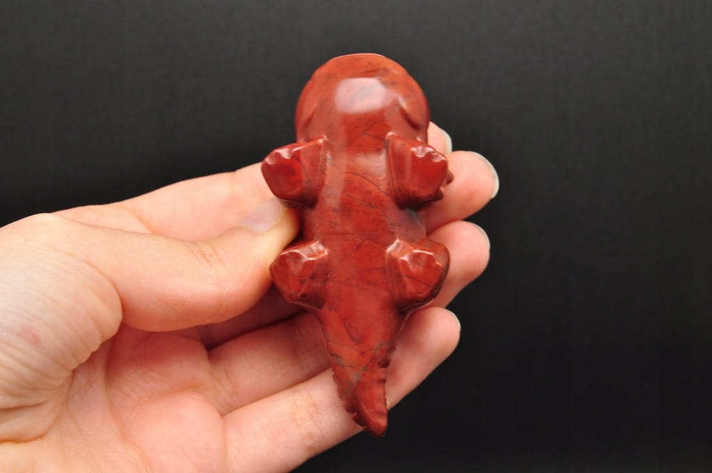 NATURALNY JASPIS CZERWONY. FIGURKA AKSOLOTLA/AMBYSTOMY MEKSYKAŃSKIEJ/ SALAMANDRY MEKSYKAŃSKIEJ. SZLIFOWANY OKAZ IDEALNY DO KOLEKCJI ORAZ NA PREZENT.