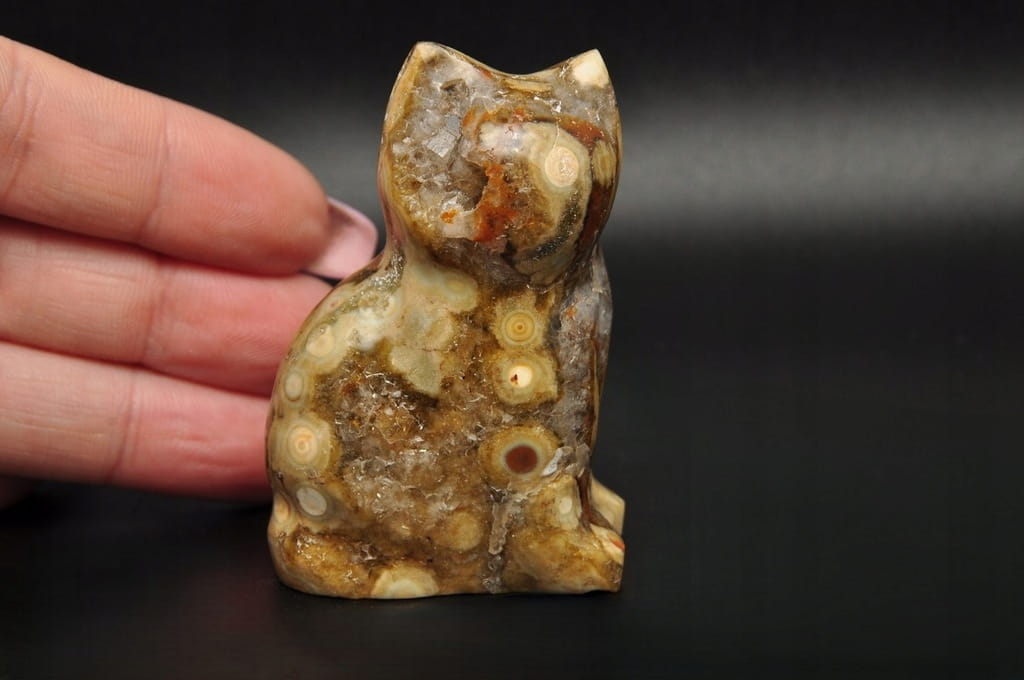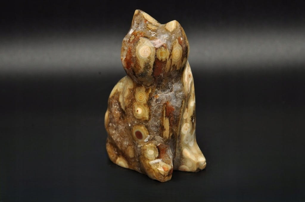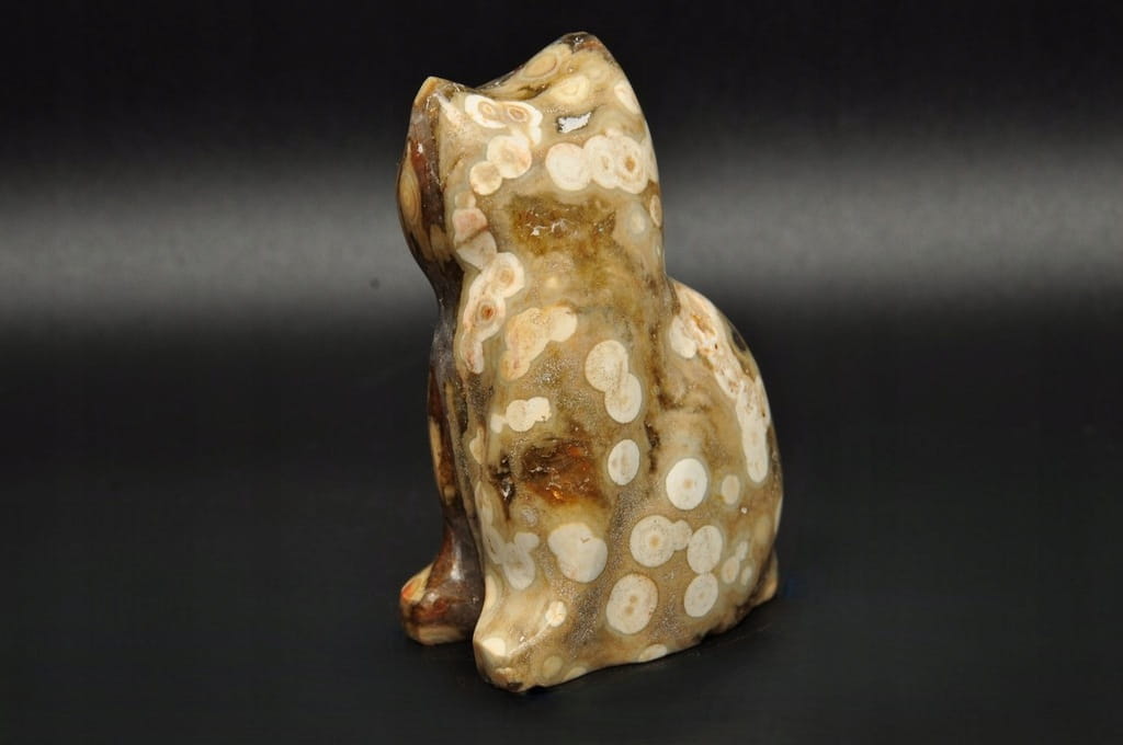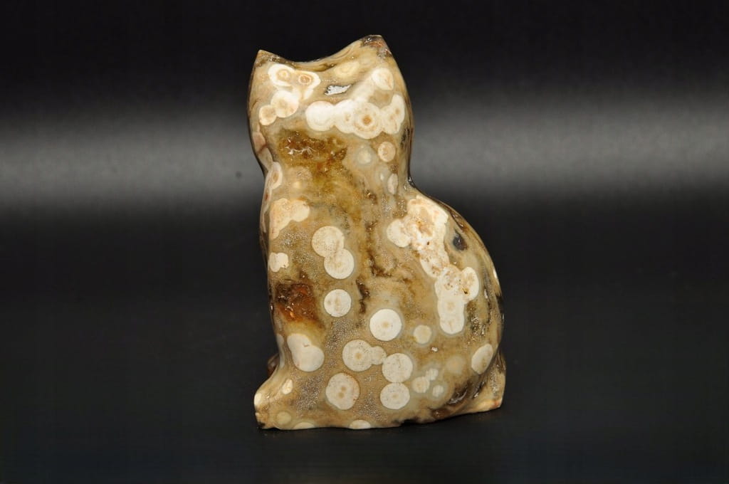 * JASPIS OCEANICZNY ORBIKULARNY KOT FIGURKA RZEŹBA DO KOLEKCJI SUPER WZÓR 3