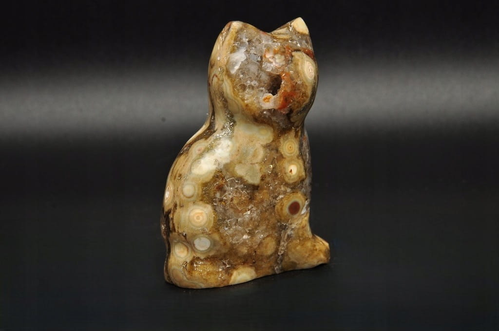 NATURALNY JASPIS ORBIKULARNY - OCEANICZNY. FIGURKA KOT, PIĘKNY MINERAŁ O CIEKAWYM WZORZE. IDEALNY DO KOLEKCJI ORAZ JAKO PREZENT.