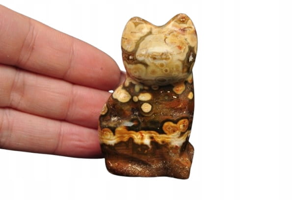 NATURALNY JASPIS ORBIKULARNY - OCEANICZNY. FIGURKA KOT, PIĘKNY MINERAŁ O CIEKAWYM WZORZE. IDEALNY DO KOLEKCJI ORAZ JAKO PREZENT.