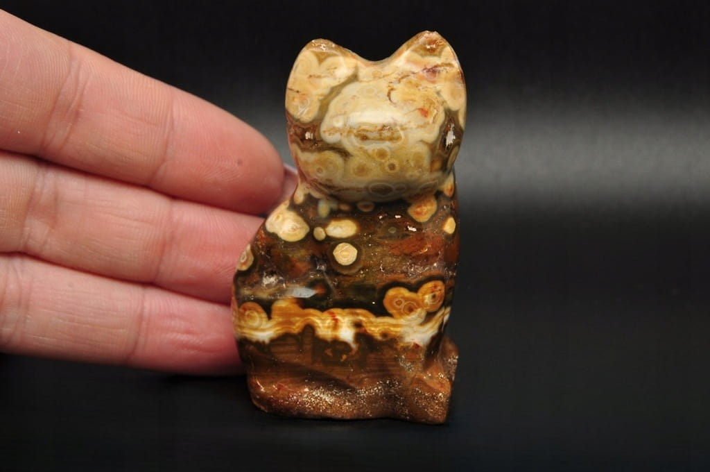 * JASPIS OCEANICZNY ORBIKULARNY SZLIFOWANY POLEROWANY KOT FIGURKA RZEŹBA 1