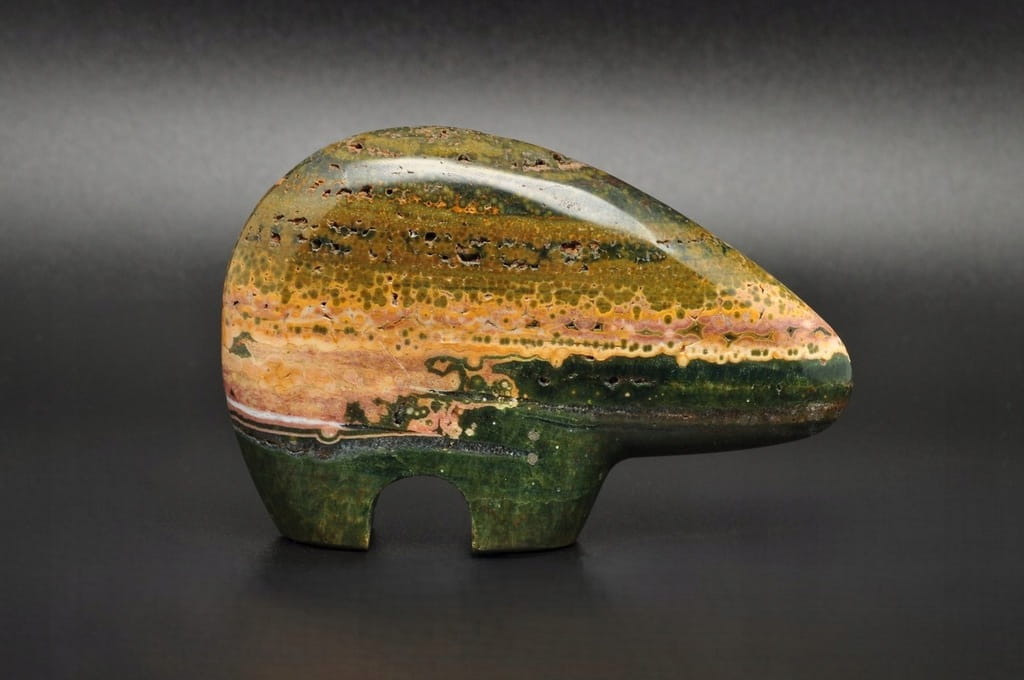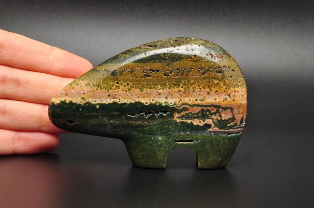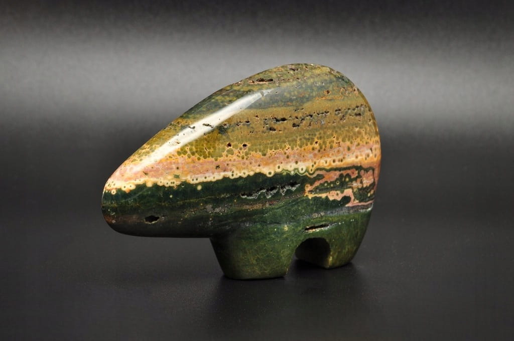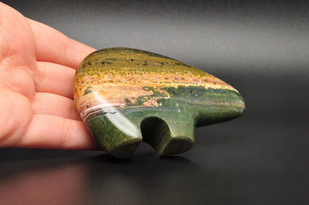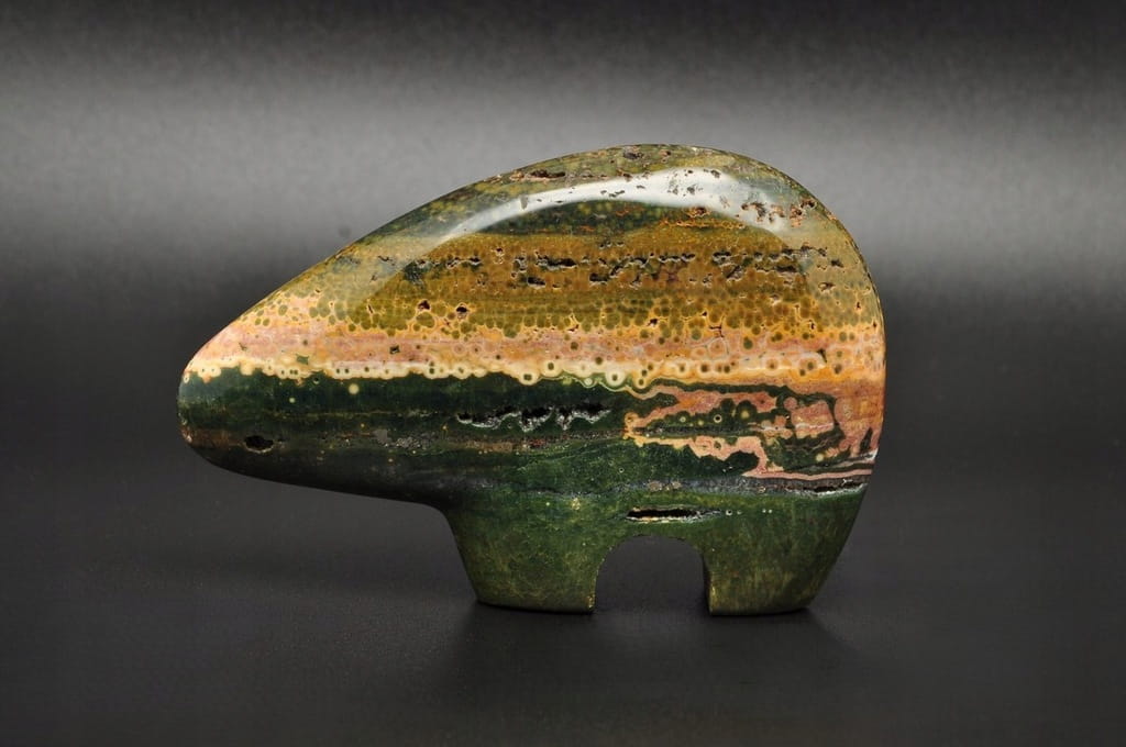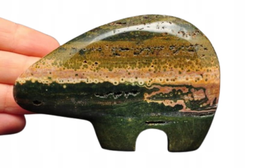 * JASPIS OCEANICZNY ORBIKULARNY UROKLIWA RZEŹBA FIGURKA NIEDŹWIEDŹ NR 1 *