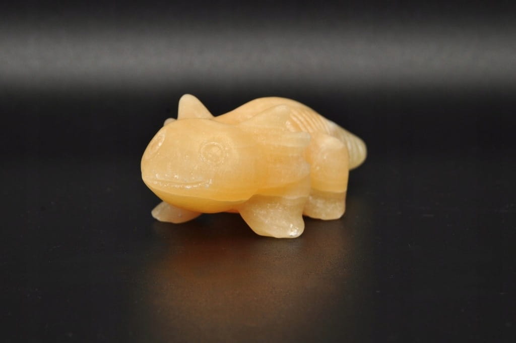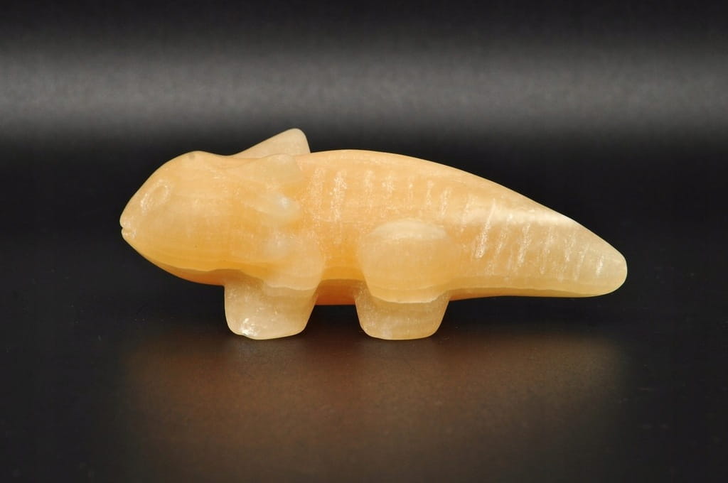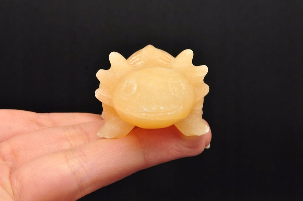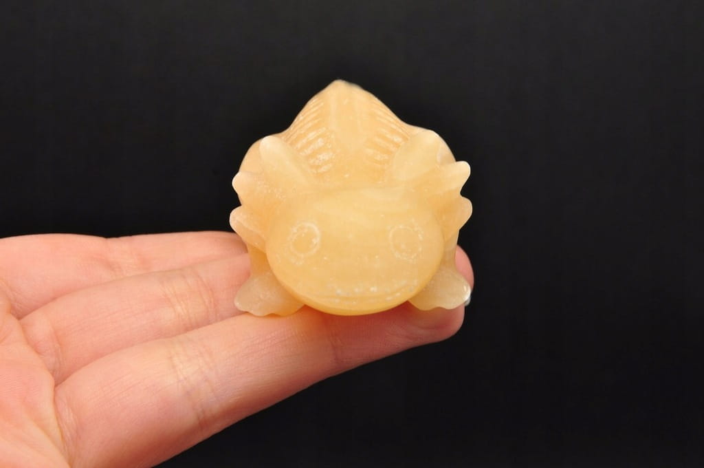 NATURALNY KALCYT ŻÓŁTY. FIGURKA AKSOLOTLA/AMBYSTOMY MEKSYKAŃSKIEJ/ SALAMANDRY MEKSYKAŃSKIEJ. SZLIFOWANY OKAZ IDEALNY DO KOLEKCJI ORAZ NA PREZENT.