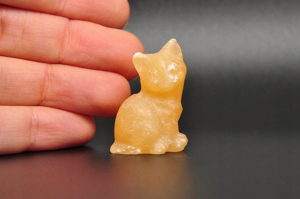 NATURALNY KALCYT ŻÓŁTY, FIGURKA - KOT. MINERAŁ O PIĘKNEJ BARWIE. IDEALNY OKAZ JAKO PREZENT ORAZ DO KOLEKCJI.