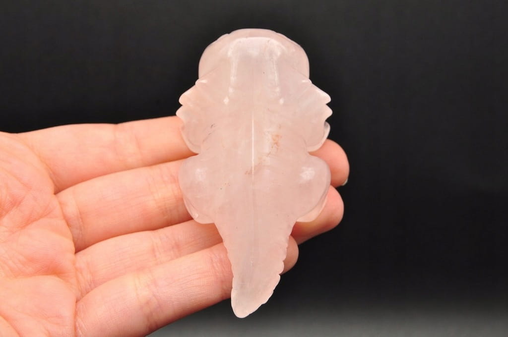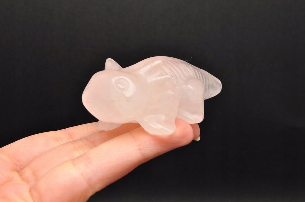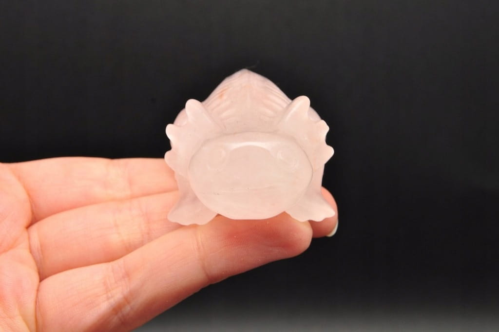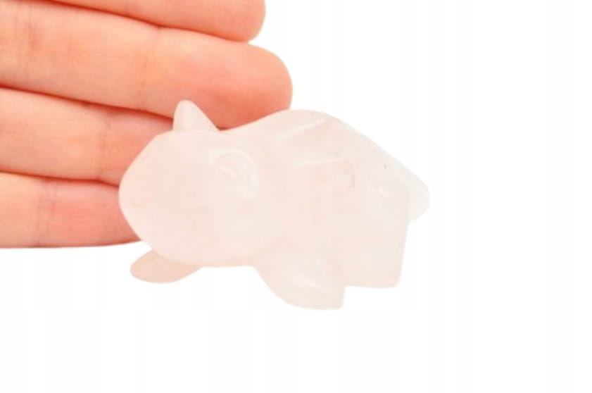 NATURALNY KWARC RÓŻOWY. FIGURKA AKSOLOTLA/AMBYSTOMY MEKSYKAŃSKIEJ/ SALAMANDRY MEKSYKAŃSKIEJ. SZLIFOWANY OKAZ IDEALNY DO KOLEKCJI ORAZ NA PREZENT.