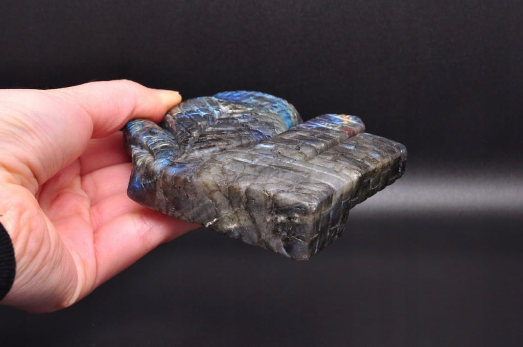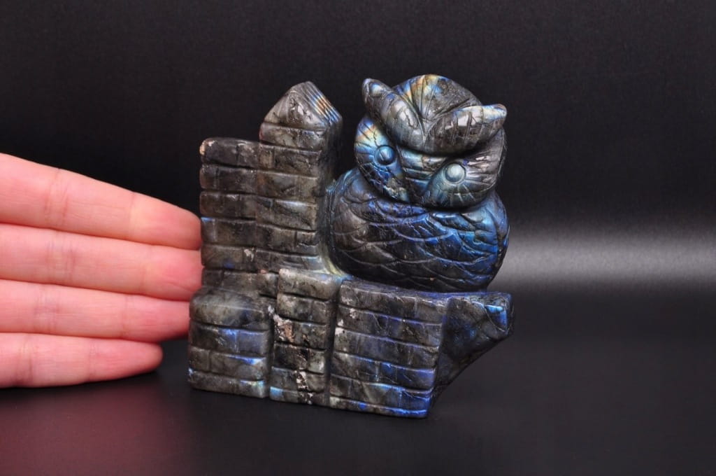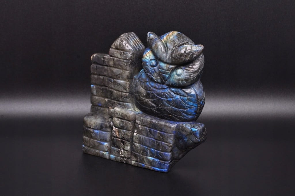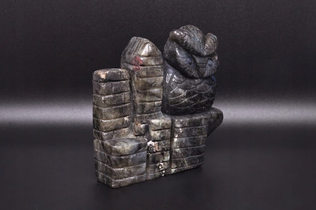 * LABRADORYT MADAGASKAR UROKLIWA FIGURKA RZEŹBA SOWA PIĘKNA DEKORACJA NR 6