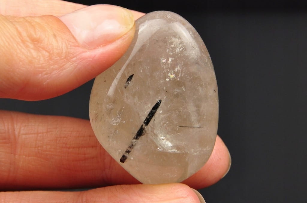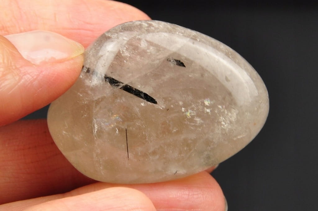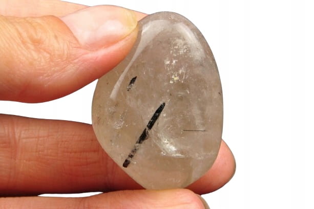 KWARC Z TURMALINEM / WŁOSY TETYDY /, ODMIANA KRYSZTAŁU GÓRSKIEGO, POLEROWANY