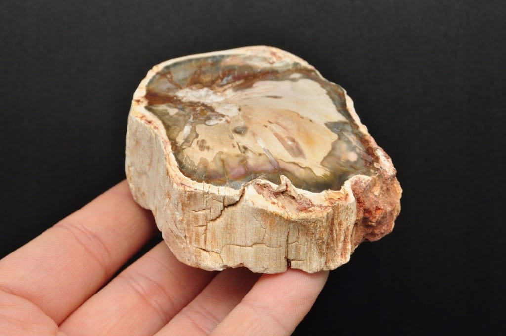 PIENIEK SKAMIENIAŁEGO DREWNA POSIADA POLEROWANĄ GÓRĘ. MINERAŁ DOSKONAŁY DO KOLEKCJI, JAKO PREZENT ORAZ DO DEKORACJI.
