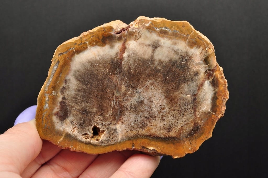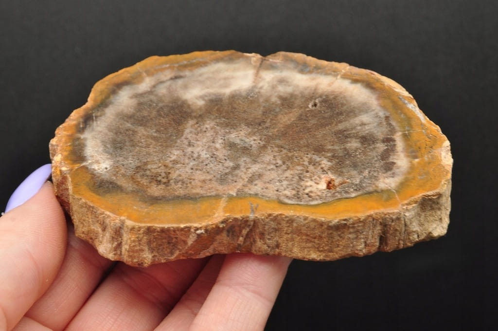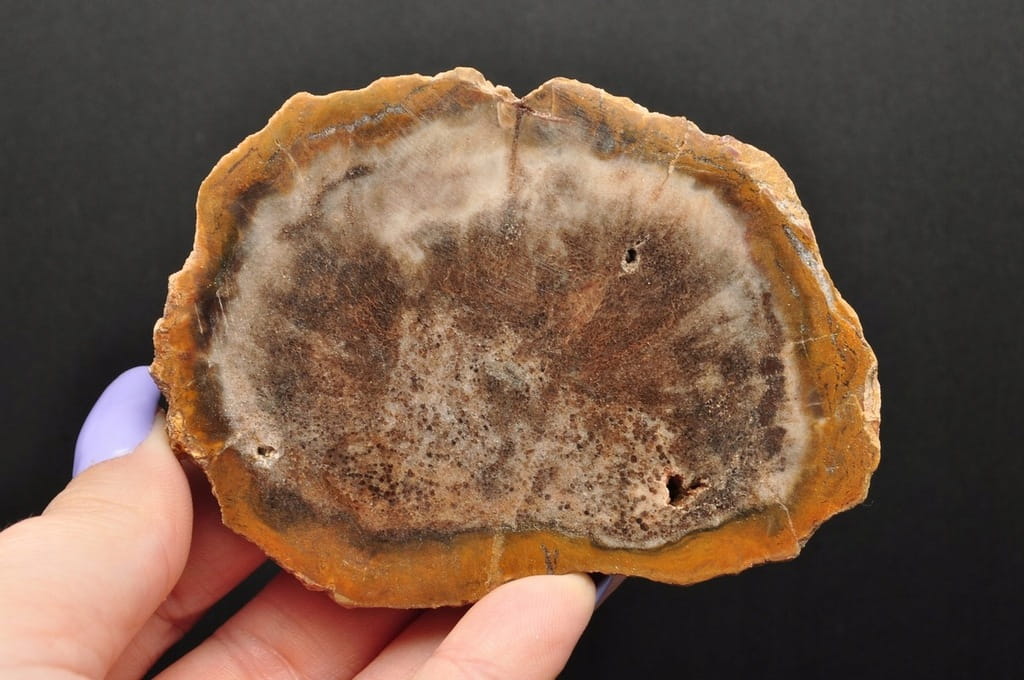 PIENIEK SKAMIENIAŁEGO DREWNA POSIADA POLEROWANĄ GÓRĘ. DOSKONAŁY DO KOLEKCJI, JAKO PREZENT LUB DEKORACJI.