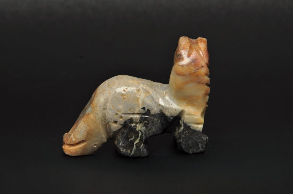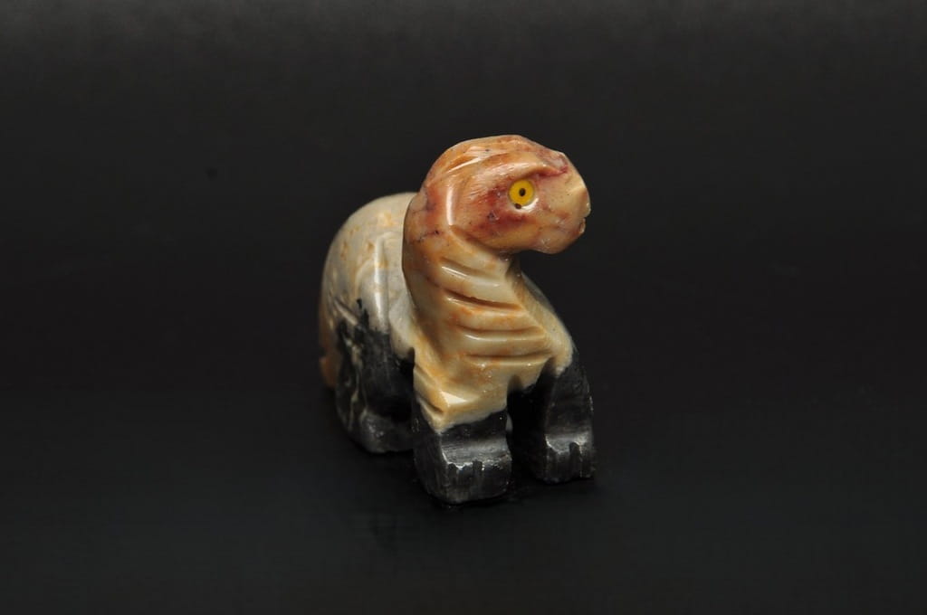 NATURALNA RZEŹBA DINOZAURA Z PERU WYKONANA Z KAMIENIA MYDLANEGO (STEATYT). ORYGINALNE RĘKODZIEŁO, DOBRA JAKOŚĆ.
