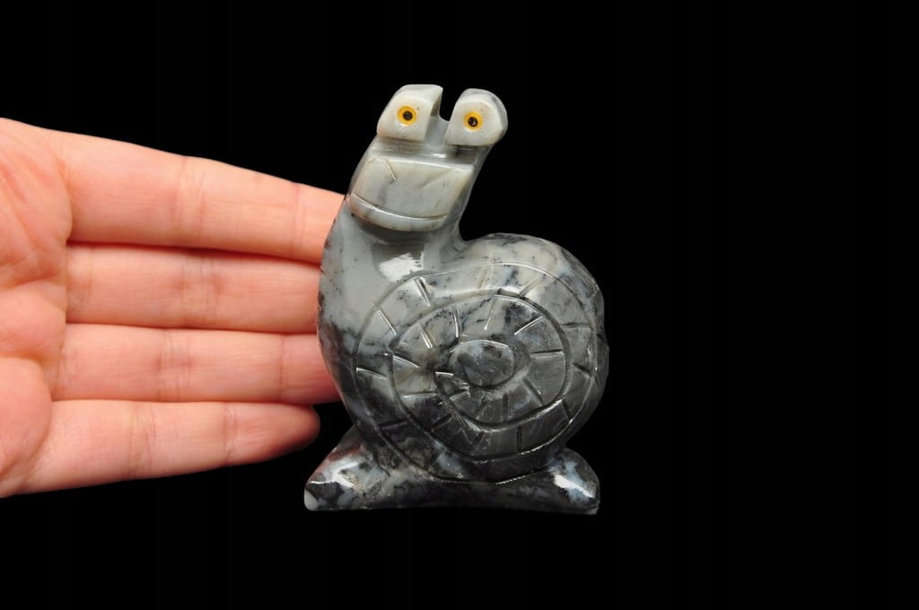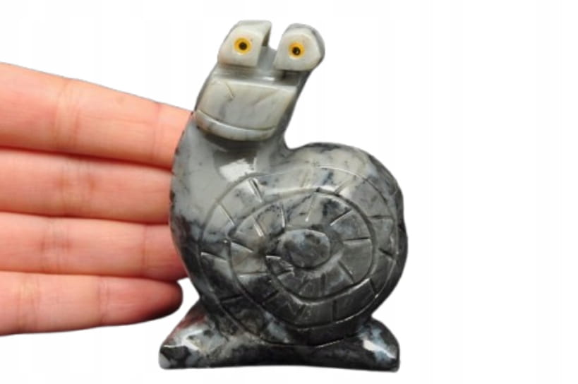 * STEATYT KAMIEŃ MYDLANY FIGURKA SZARY ŚLIMAK CIEKAWA RZEŹBA NR 11 *
