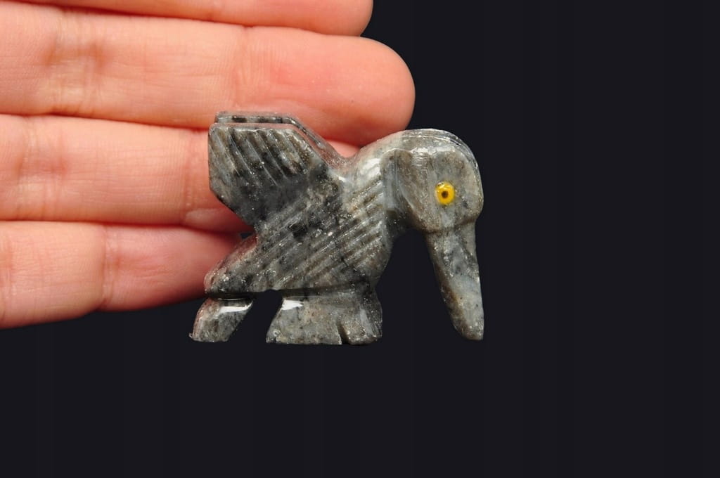 NATURALNA RZEŹBA PTAK Z PERU WYKONANA Z KAMIENIA MYDLANEGO (STEATYT). ORYGINALNE RĘKODZIEŁO, SUPER JAKOŚĆ.