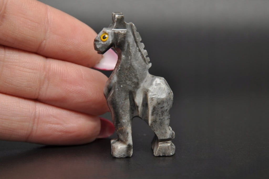 NATURALNA RZEŹBA ŻYRAFY Z PERU WYKONANA Z KAMIENIA MYDLANEGO (STEATYT). ORYGINALNE RĘKODZIEŁO, SUPER JAKOŚĆ.