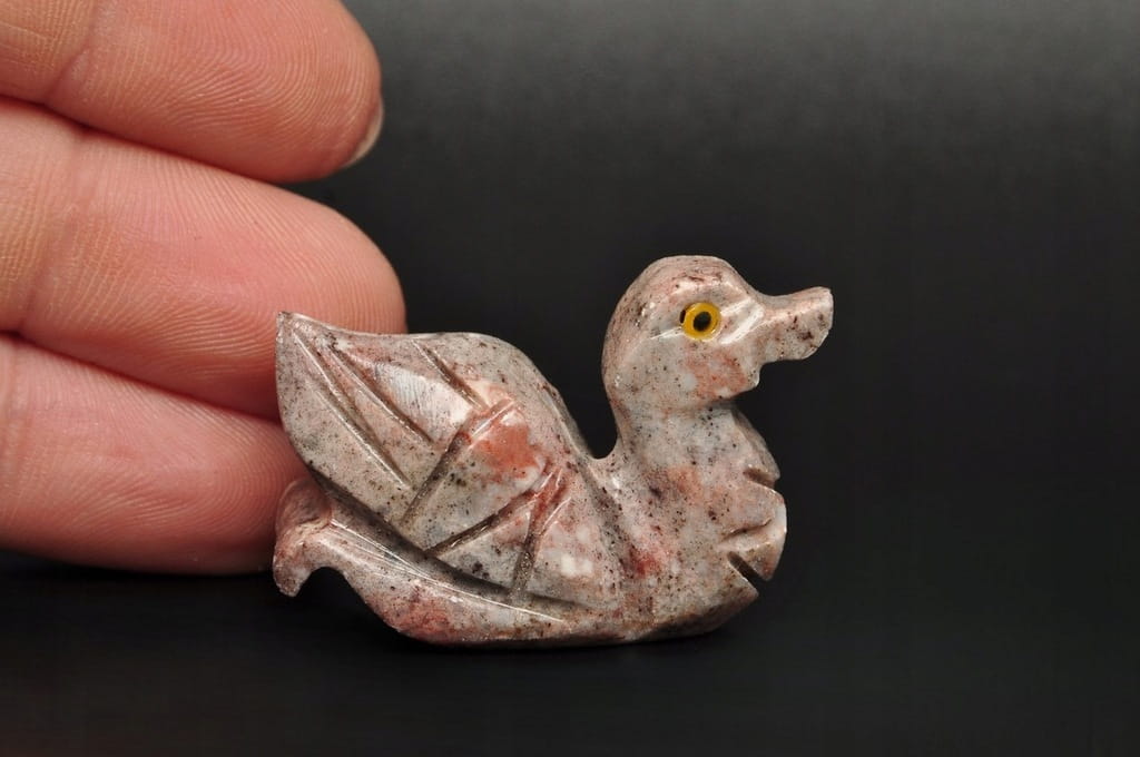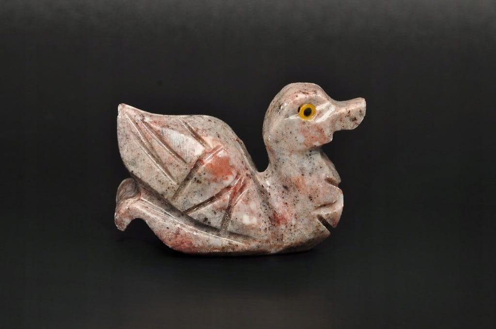 NATURALNA RZEŹBA KACZKA Z PERU WYKONANA Z KAMIENIA MYDLANEGO (STEATYT). ORYGINALNE RĘKODZIEŁO, DOBRA JAKOŚĆ.