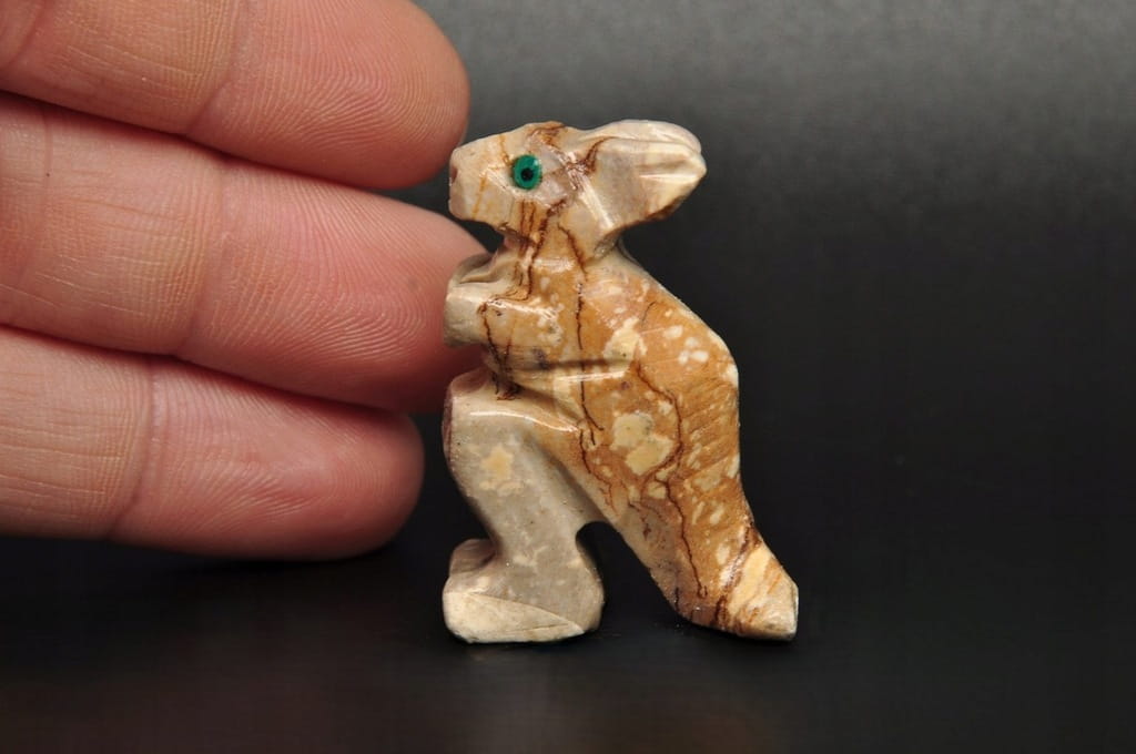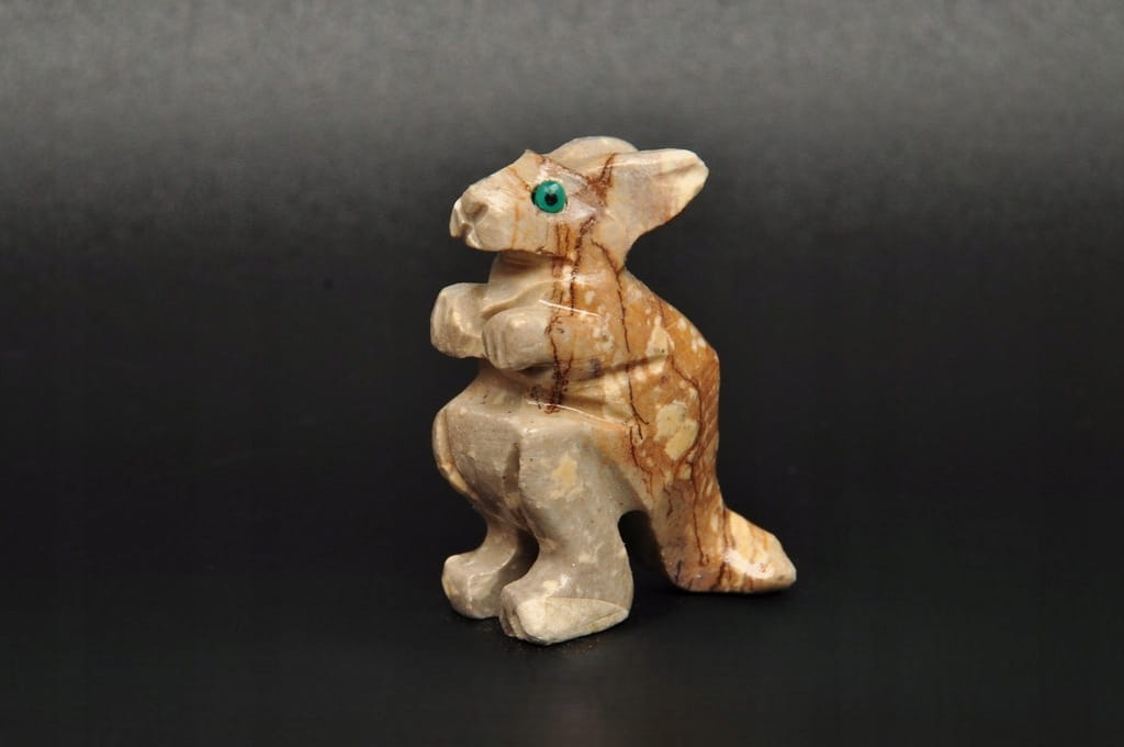 NATURALNA RZEŹBA KANGUR Z PERU WYKONANA Z KAMIENIA MYDLANEGO (STEATYT). ORYGINALNE RĘKODZIEŁO, DOBRA JAKOŚĆ.