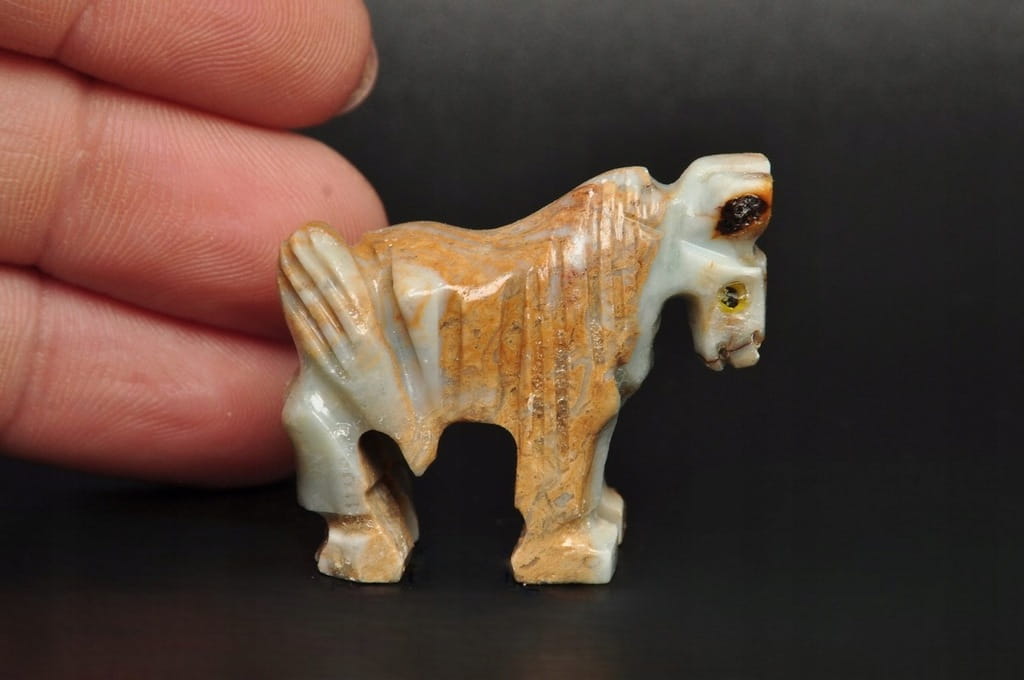 NATURALNA RZEŹBA KOŃ Z PERU WYKONANA Z KAMIENIA MYDLANEGO (STEATYT). ORYGINALNE RĘKODZIEŁO, DOBRA JAKOŚĆ.
