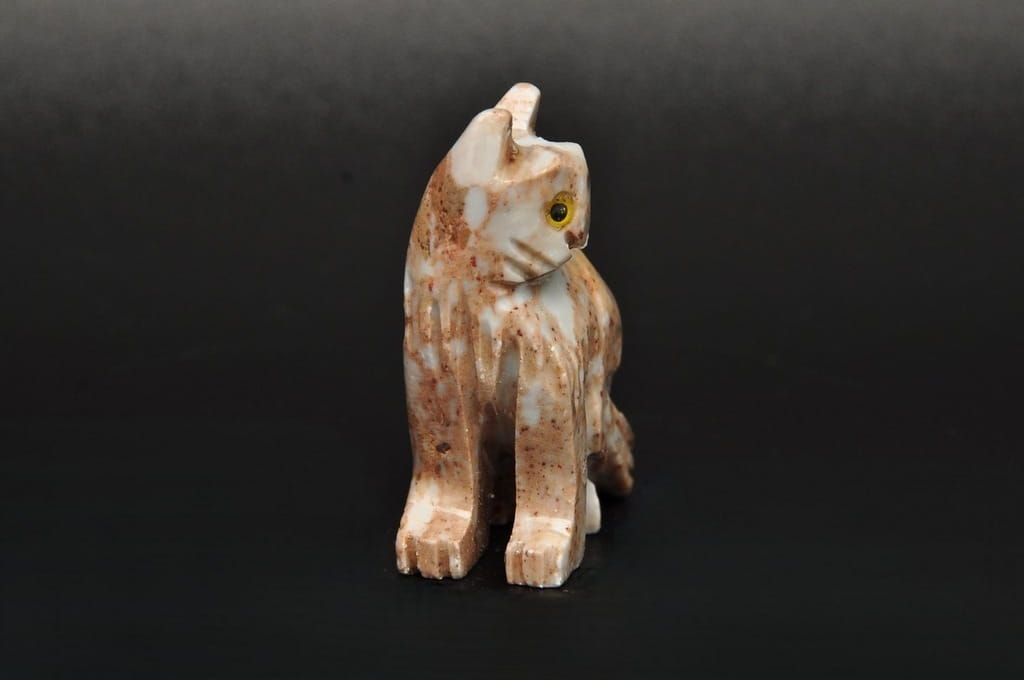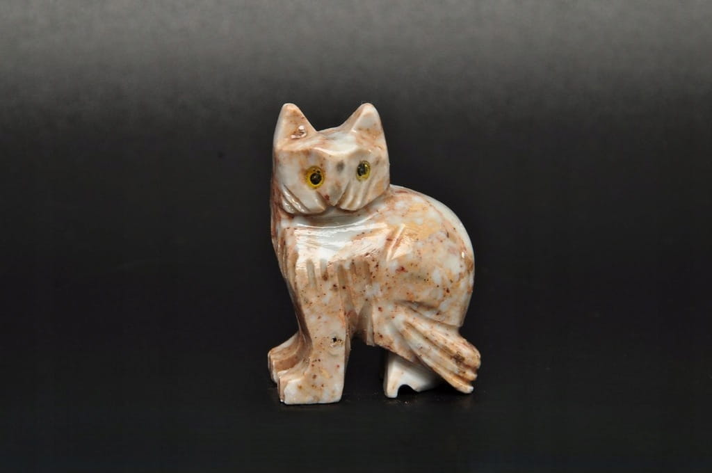NATURALNA RZEŹBA KOT Z PERU WYKONANA Z KAMIENIA MYDLANEGO (STEATYT). ORYGINALNE RĘKODZIEŁO, DOBRA JAKOŚĆ.