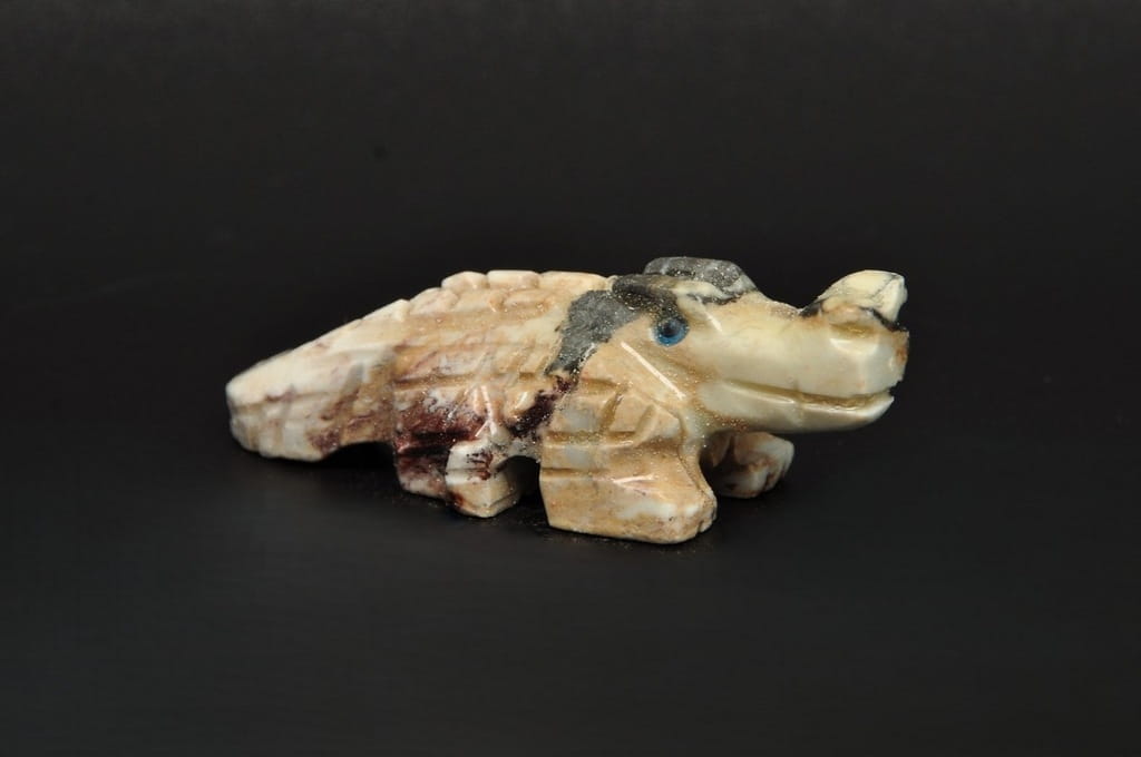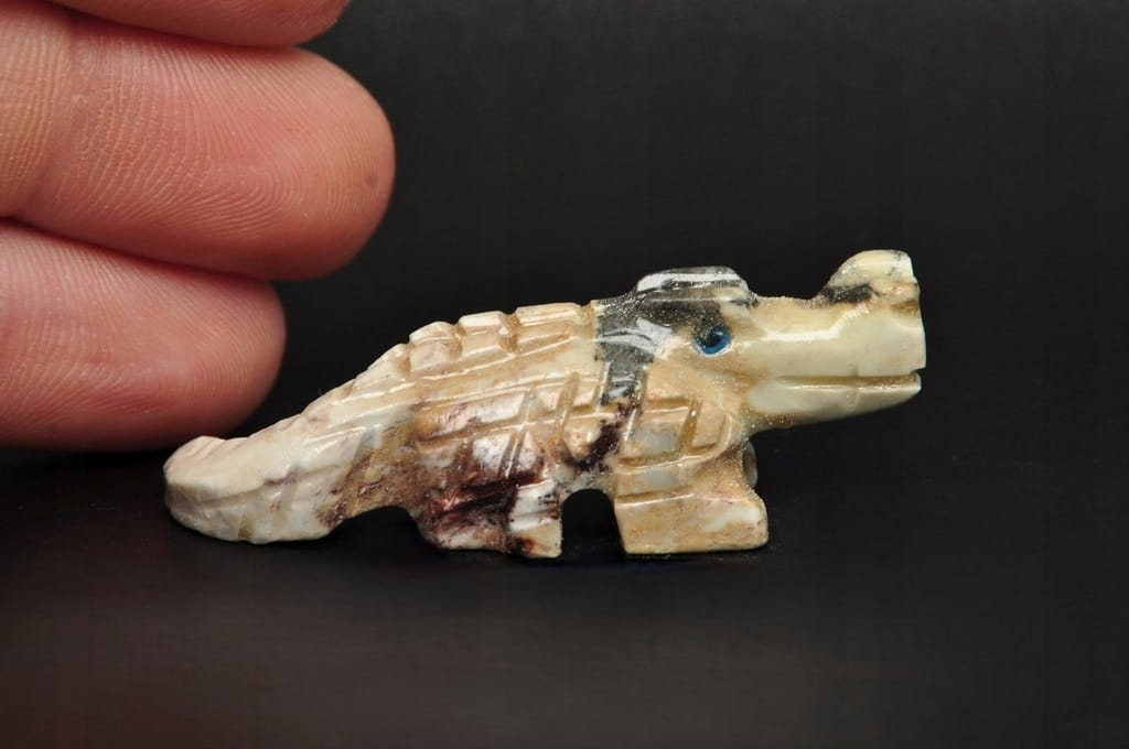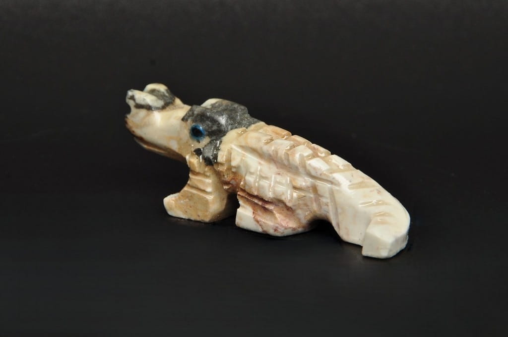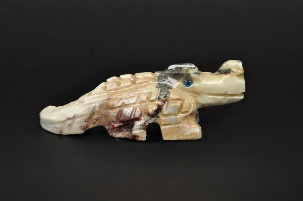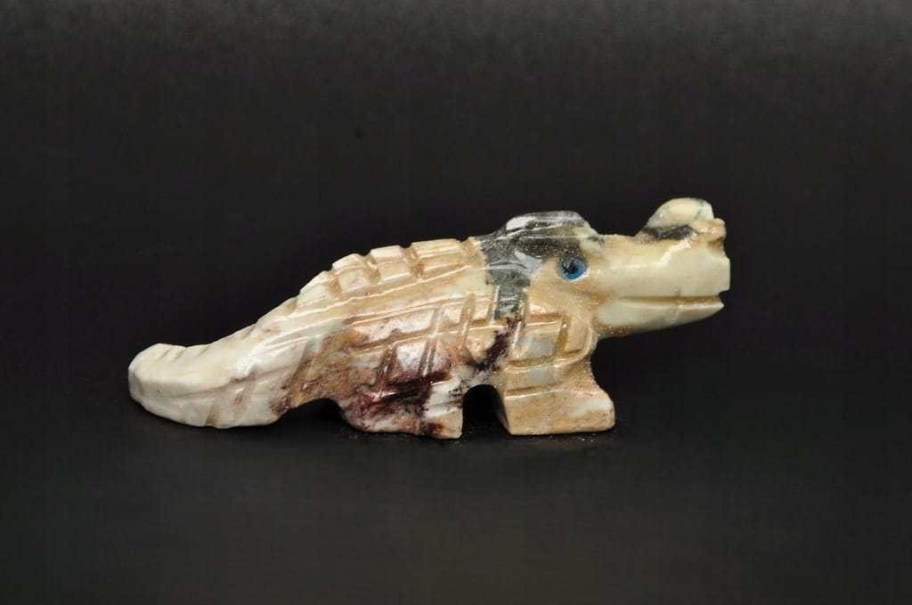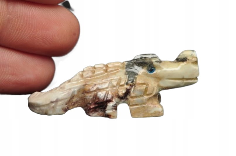 NATURALNA RZEŹBA KROKODYL Z PERU WYKONANA Z KAMIENIA MYDLANEGO (STEATYT). ORYGINALNE RĘKODZIEŁO, DOBRA JAKOŚĆ.