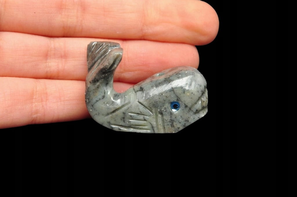 NATURALNA RZEŹBA WIELORYB Z PERU WYKONANA Z KAMIENIA MYDLANEGO (STEATYT). ORYGINALNE RĘKODZIEŁO, SUPER JAKOŚĆ.