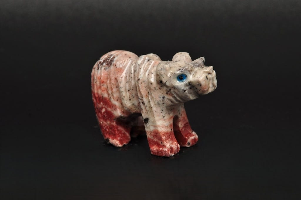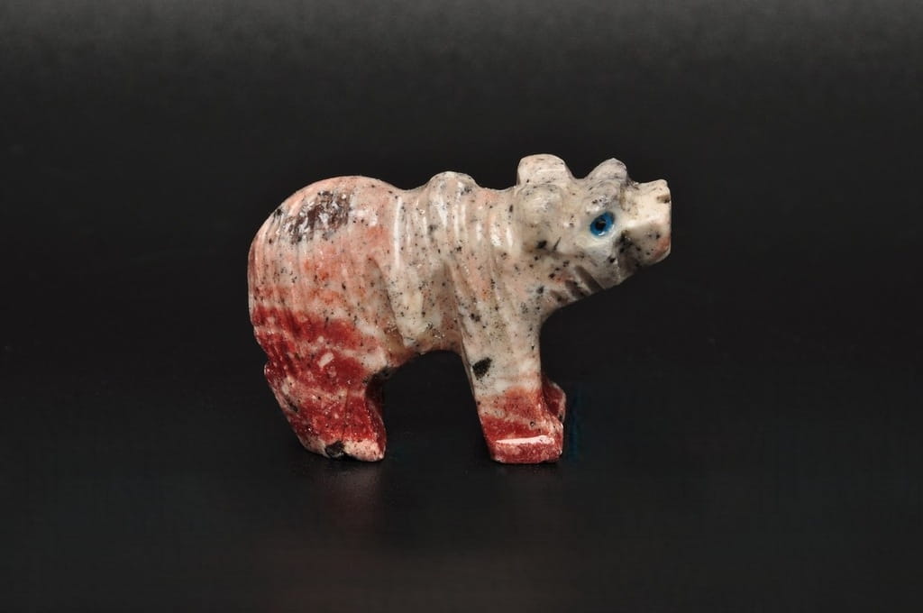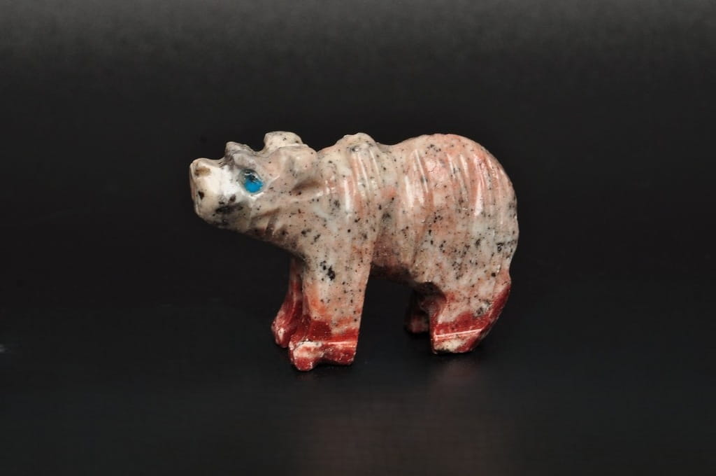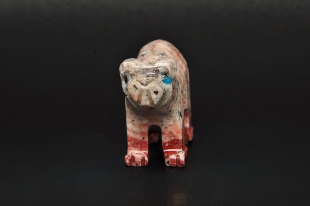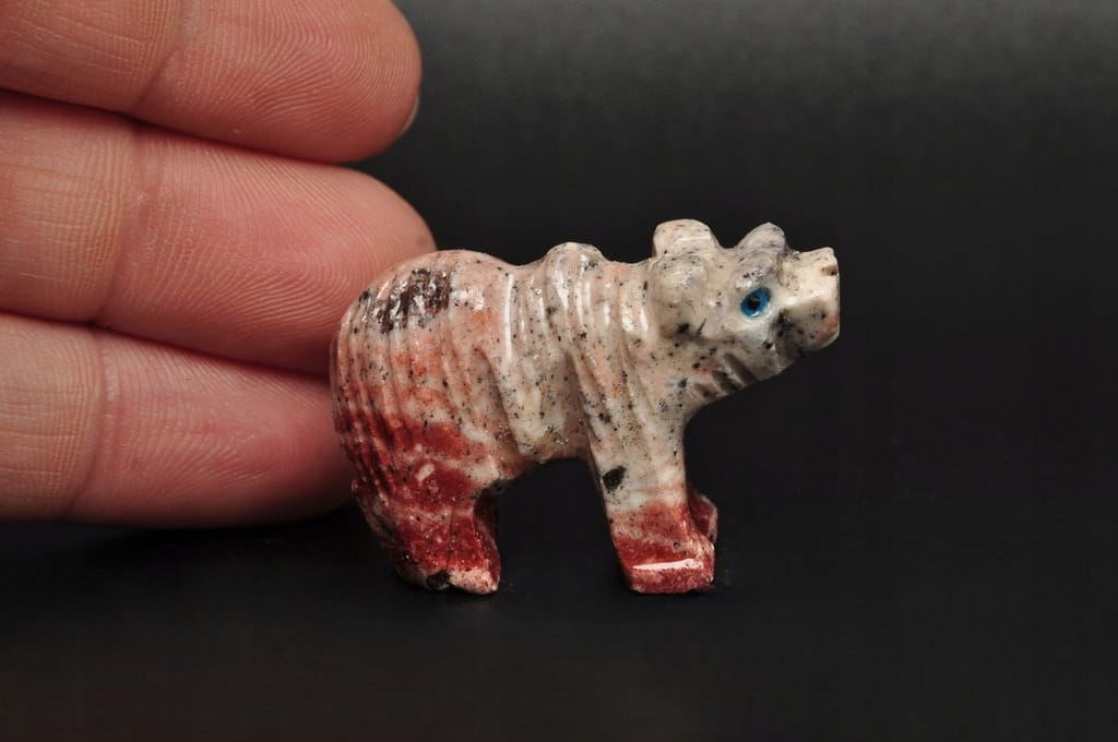 NATURALNA RZEŹBA NIEDŹWIEDŹ/MIŚ Z PERU WYKONANA Z KAMIENIA MYDLANEGO (STEATYT). ORYGINALNE RĘKODZIEŁO, DOBRA JAKOŚĆ.