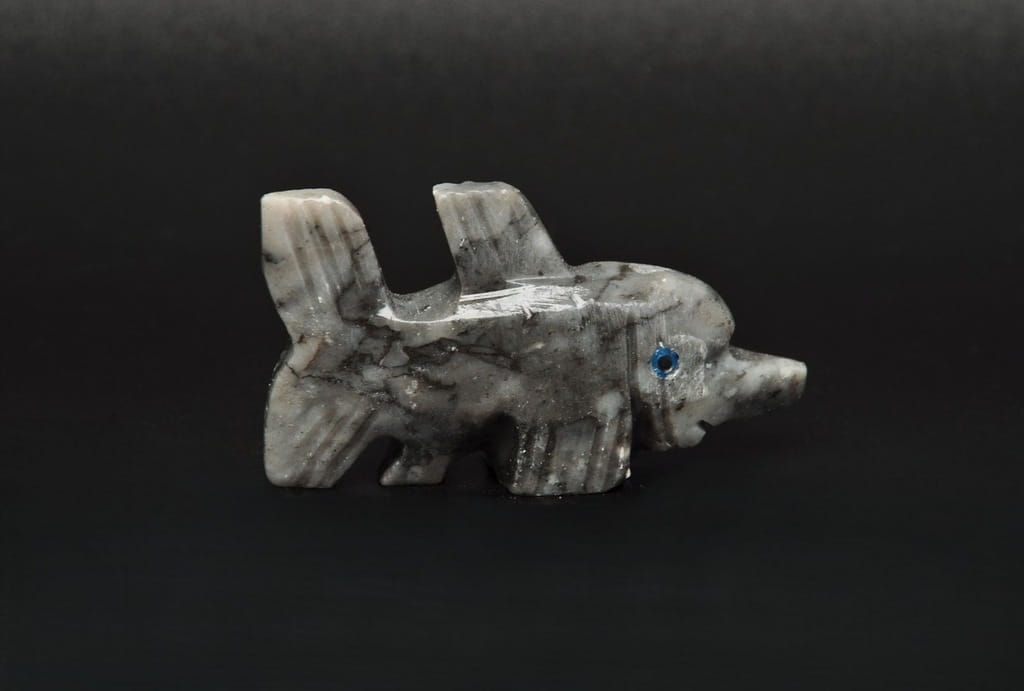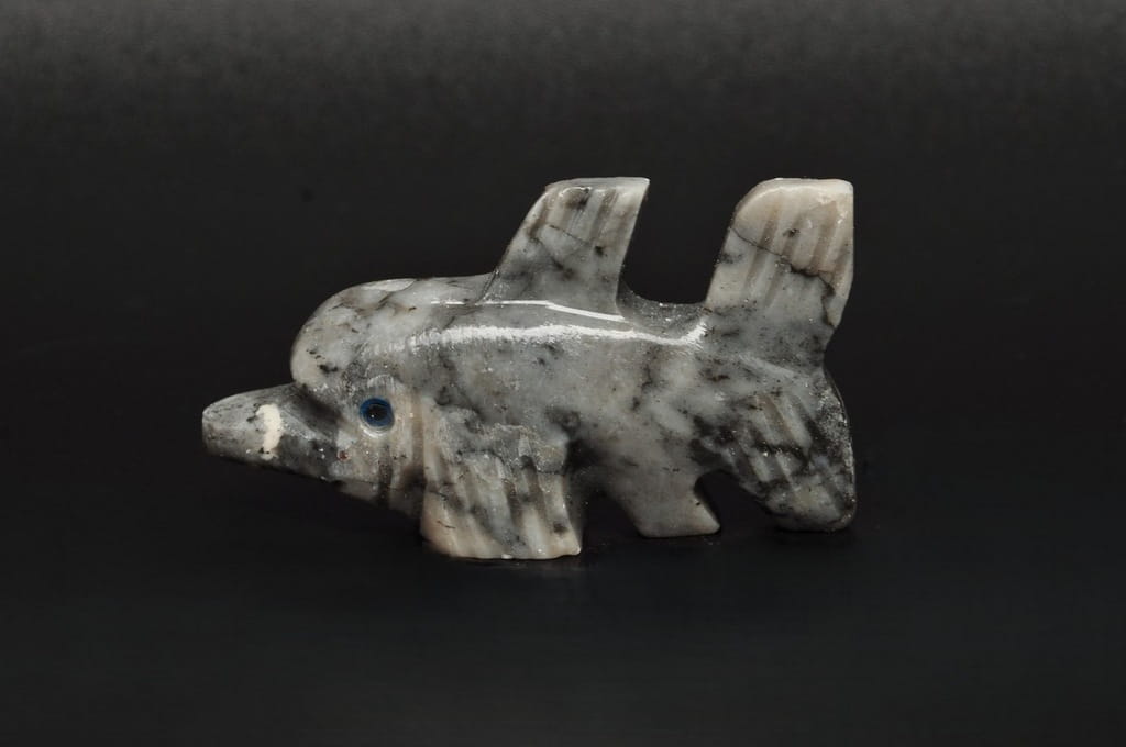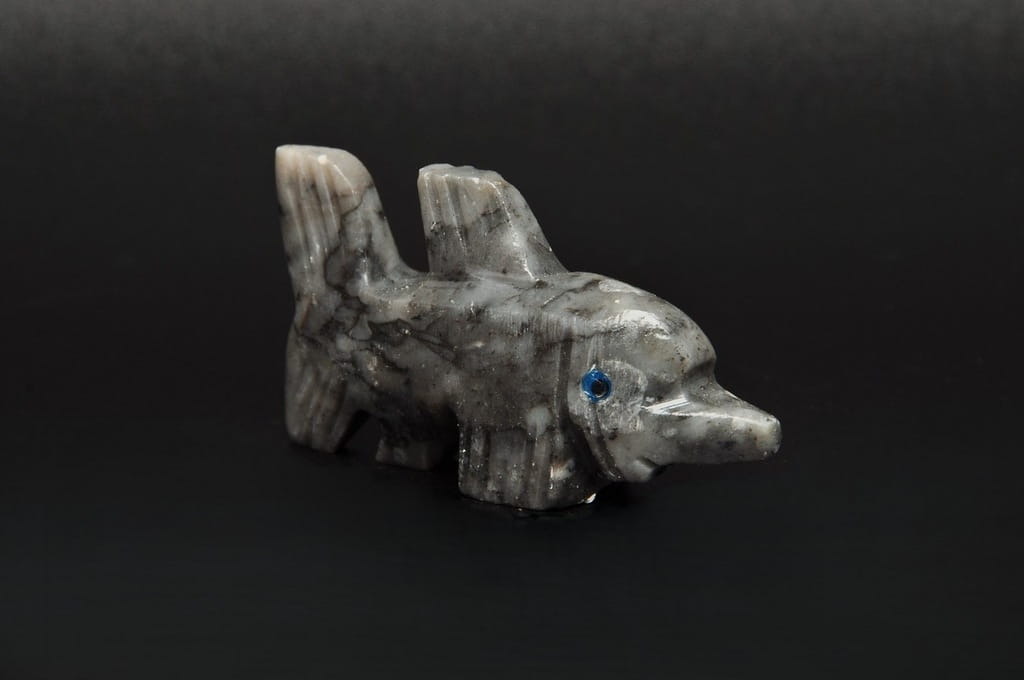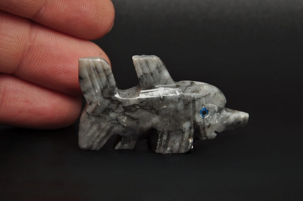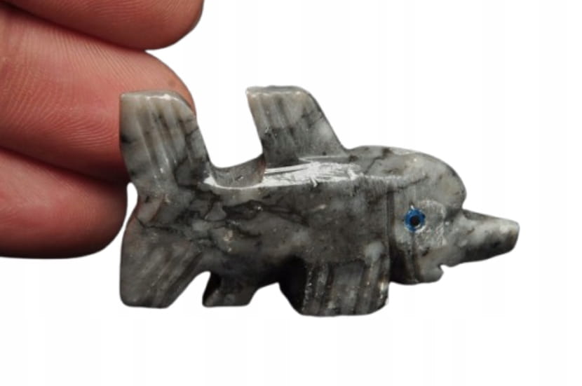 NATURALNA RZEŹBA RYBA Z PERU WYKONANA Z KAMIENIA MYDLANEGO (STEATYT). ORYGINALNE RĘKODZIEŁO, DOBRA JAKOŚĆ.