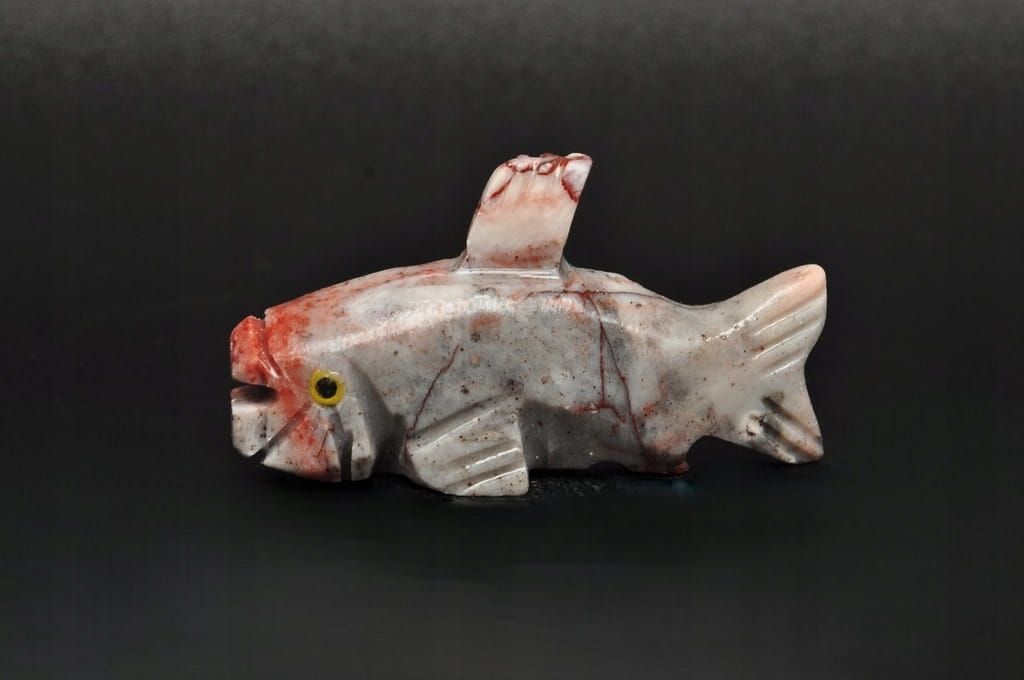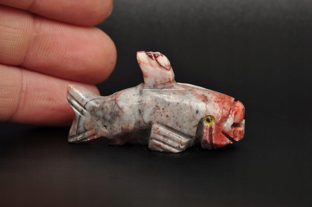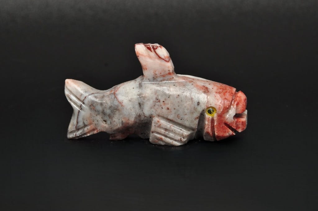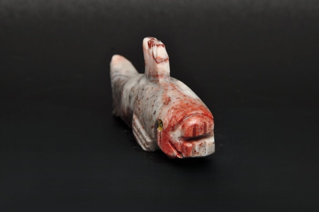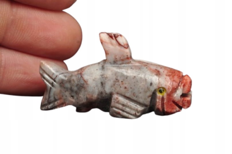 NATURALNA RZEŹBA RYBA Z PERU WYKONANA Z KAMIENIA MYDLANEGO (STEATYT). ORYGINALNE RĘKODZIEŁO, DOBRA JAKOŚĆ.