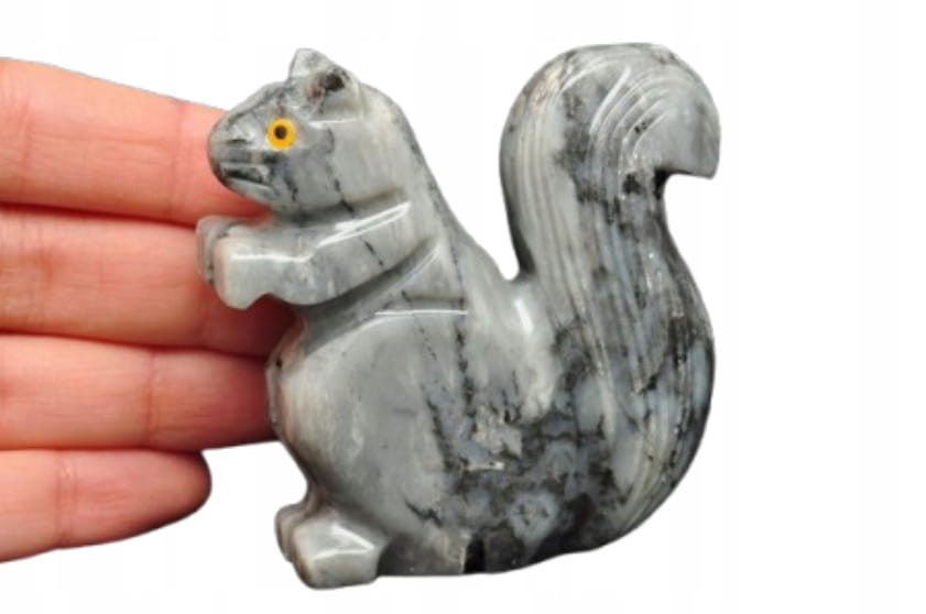 NATURALNA RZEŹBA WIEWIÓRKI WYKONANA Z KAMIENIA MYDLANEGO (STEATYT). ORYGINALNE RĘKODZIEŁO Z PERU, SUPER JAKOŚĆ. ŚWIETNY OKAZ DO KOLEKCJI ORAZ NA PREZENT.