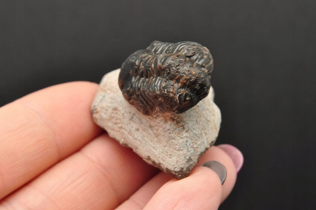 SKAMIENIAŁY TRYLOBIT PHACOPS W SKALE. BARDZO DOBRZE ZACHOWANY OKAZ IDEALNY DO KOLEKCJI ORAZ JAKO PREZENT. ORYGINALNA SKAMIENIAŁOŚĆ.