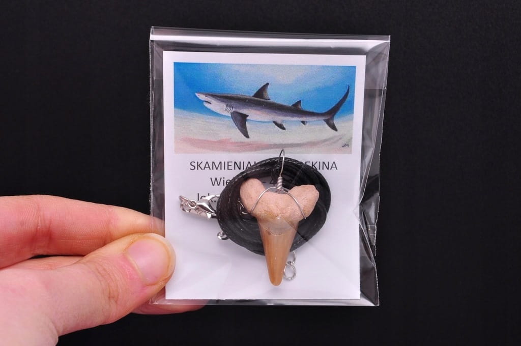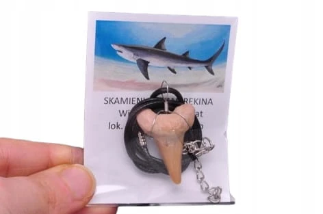 ŚLICZNA ZAWIESZKA, ZĄB PREHISTORYCZNEGO REKINA. NATURALNY OKAZ, BARDZO DOBRZE ZACHOWANY. DOSKONAŁY JAKO PREZENT ORAZ DO NOSZENIA NA CO DZIEŃ.