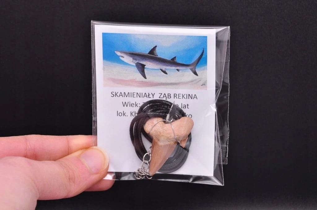 ŚLICZNA ZAWIESZKA, ZĄB PREHISTORYCZNEGO REKINA. NATURALNY OKAZ, BARDZO DOBRZE ZACHOWANY. DOSKONAŁY JAKO PREZENT ORAZ DO NOSZENIA NA CO DZIEŃ.