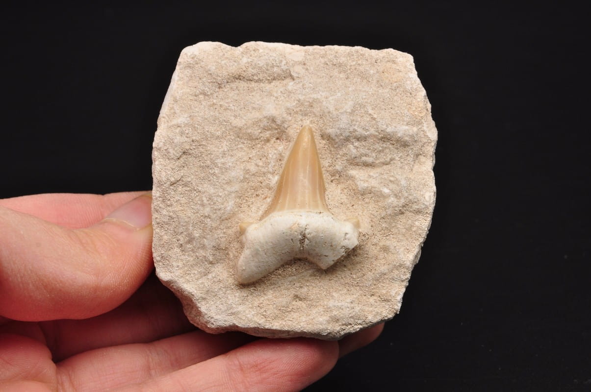 NATURALNY, SKAMIENIAŁY ZĄB REKINA W SKALE MACIERZYSTEJ. BARDZO DOBRZE ZACHOWANY, SUPER JAKOŚĆ, IDEALNY DO KOLEKCJI.